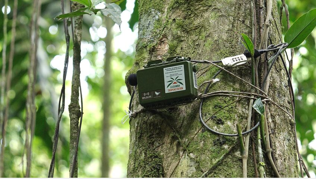 24 Aufnahmegeräte der Firma Wildlife Acoustics sind im Abstand von 200 – 300m pro Standort, in einer Höhe von 4 Metern, an Bäumen befestigt. Alle 10 Minuten wird eine Tonaufnahme von einer Minute aufgenommen. Fotos oder Videos können diese Geräte zwar nicht liefern, aber arbeiten dafür die Nacht durch.